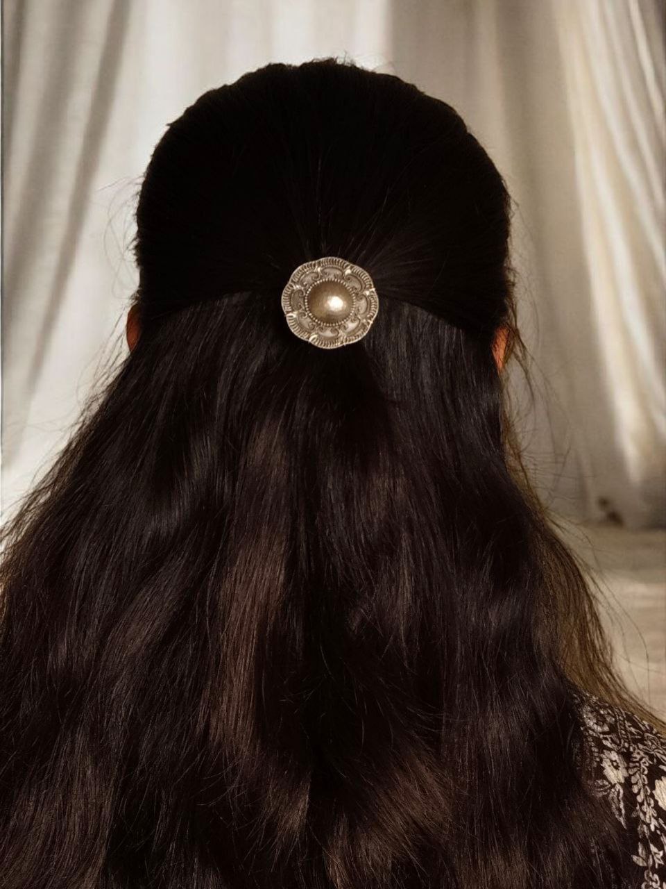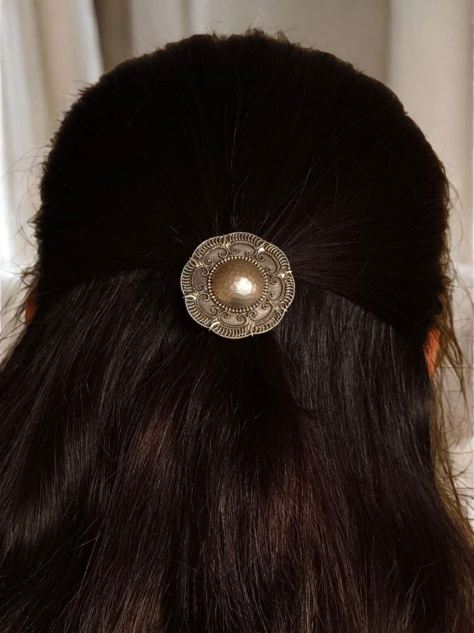 Lightweight and gentle on the hair, this Oxidized Hair Pin offers a secure grip without pulling or damaging your strands. It is perfect for styling buns, braids, half-up hairstyles, or simply adding a decorative touch to loose hair. The ergonomic design ensures that it stays in place comfortably throughout the day, making it ideal for everyday wear as well as festive occasions.