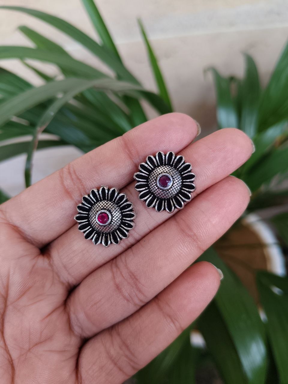 Trendy Silver Replica Flower Stud Earrings | Designer Daily Wear Stone Amazing Jewelry