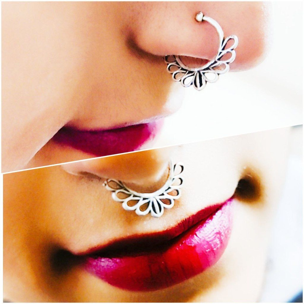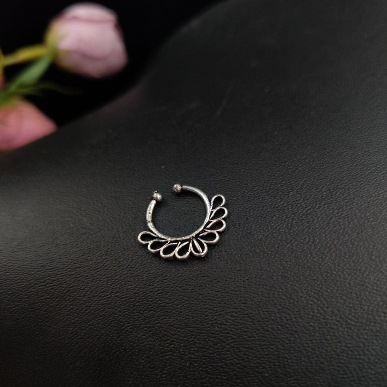 The oxidised finish adds depth and character to the silver, imbuing each nosepin with a sense of authenticity and antiquity. This beautiful patina enhances the intricate details of the designs, creating a striking contrast that catches the eye and captivates the imagination.