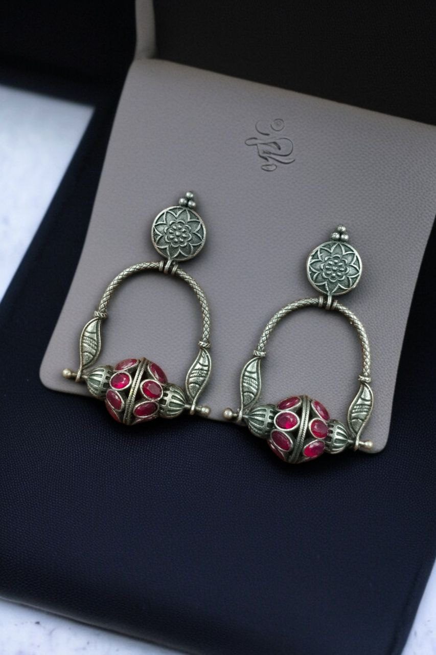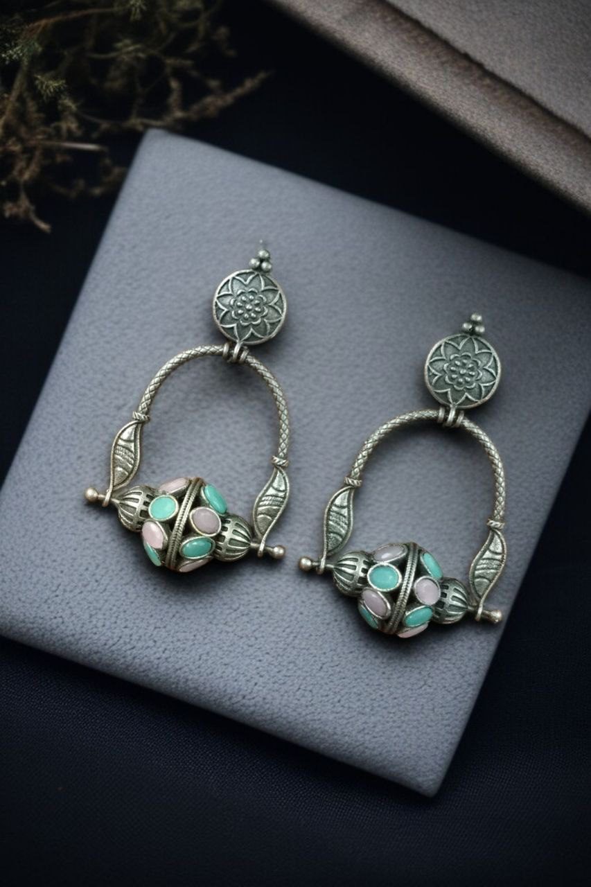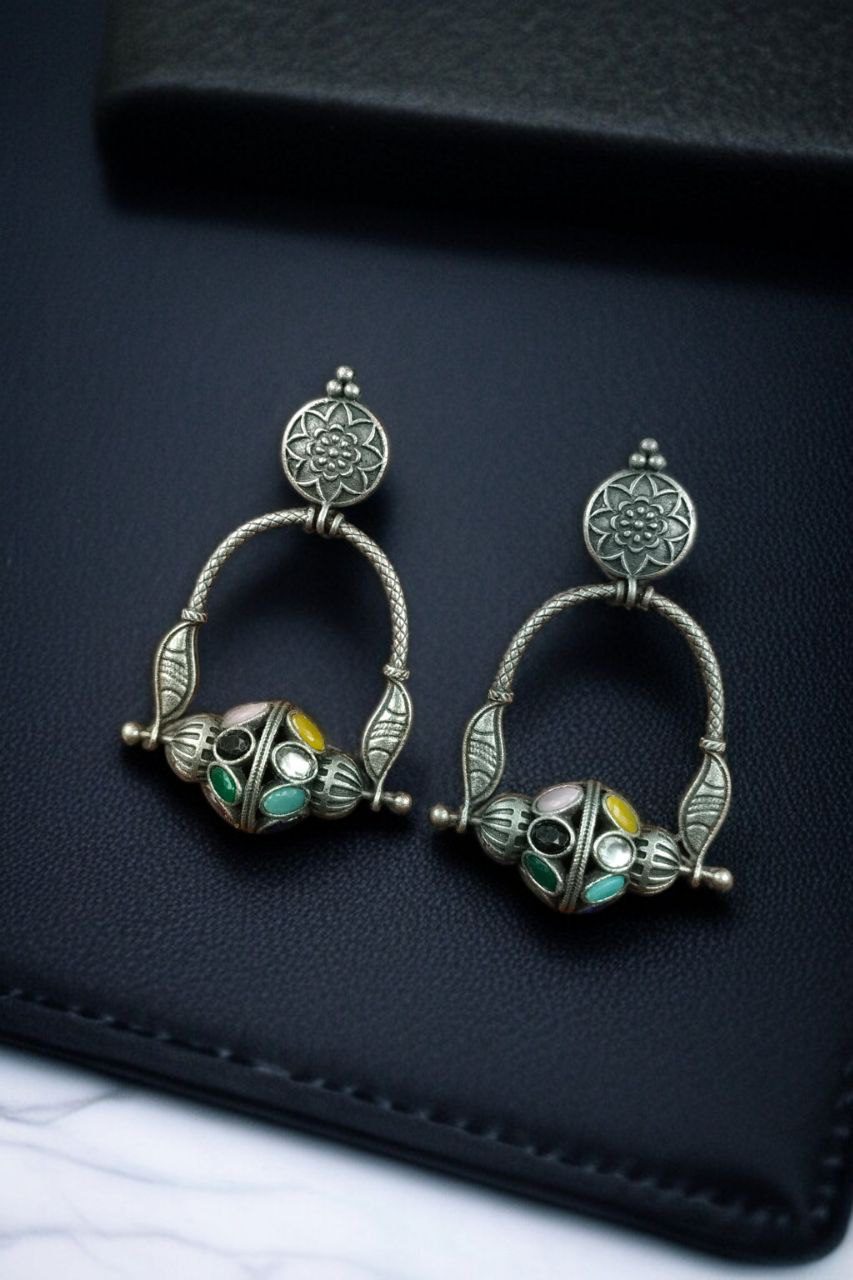 Unique Design Oxidised Dangler Earrings with Stone Work ? Silver Plated Ethnic Jewelry