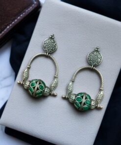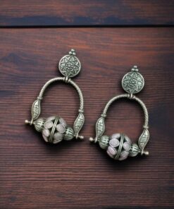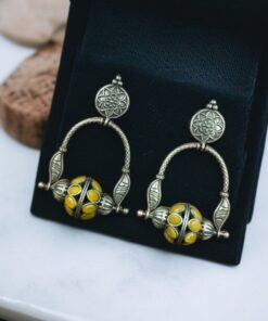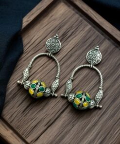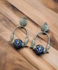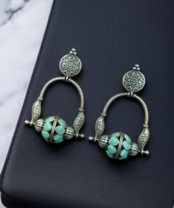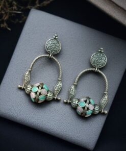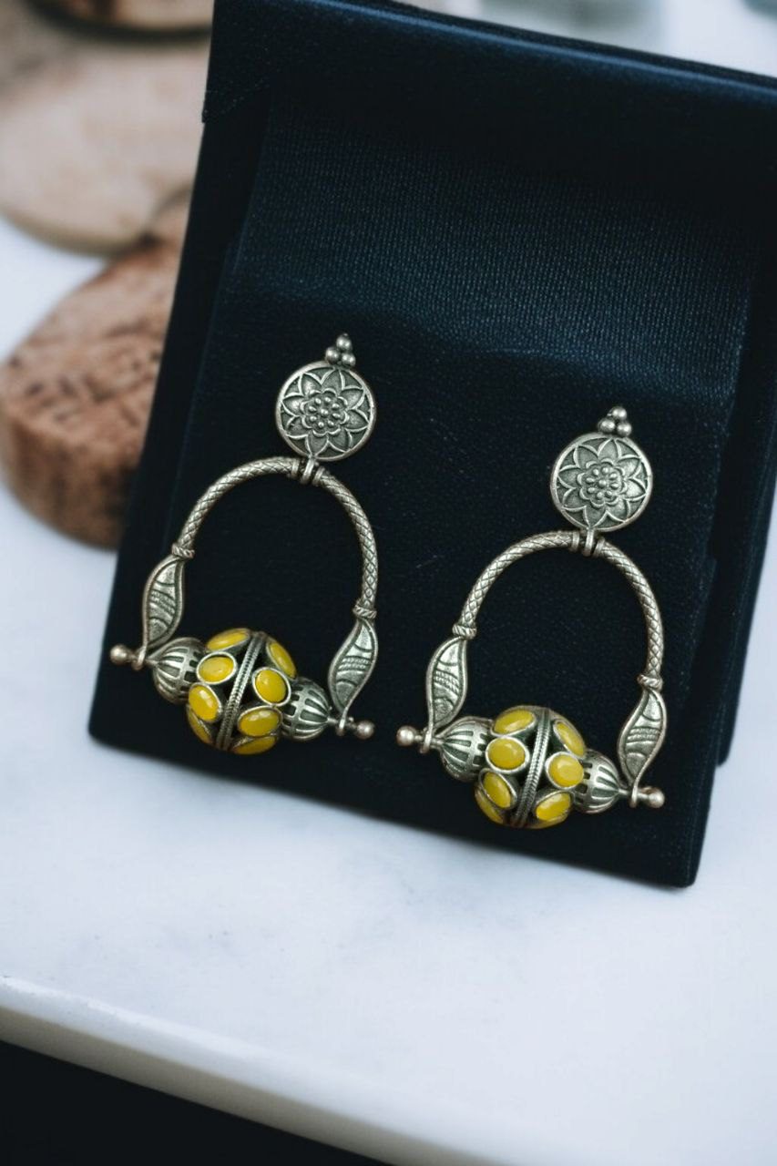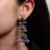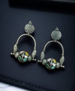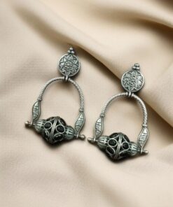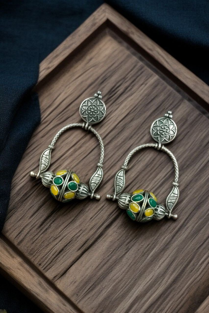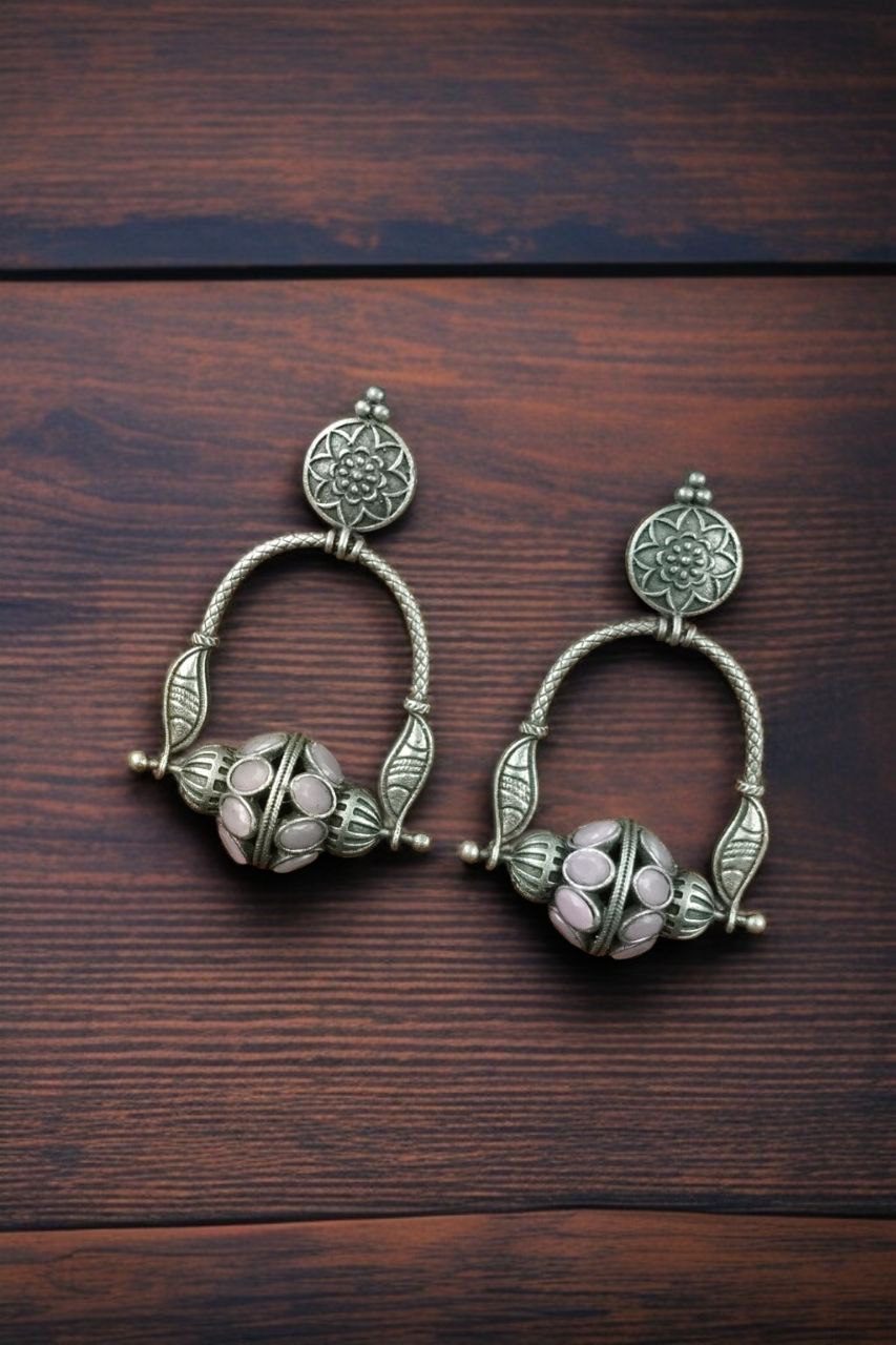 Unique Design Oxidised Dangler Earrings with Stone Work ? Silver Plated Ethnic Jewelry