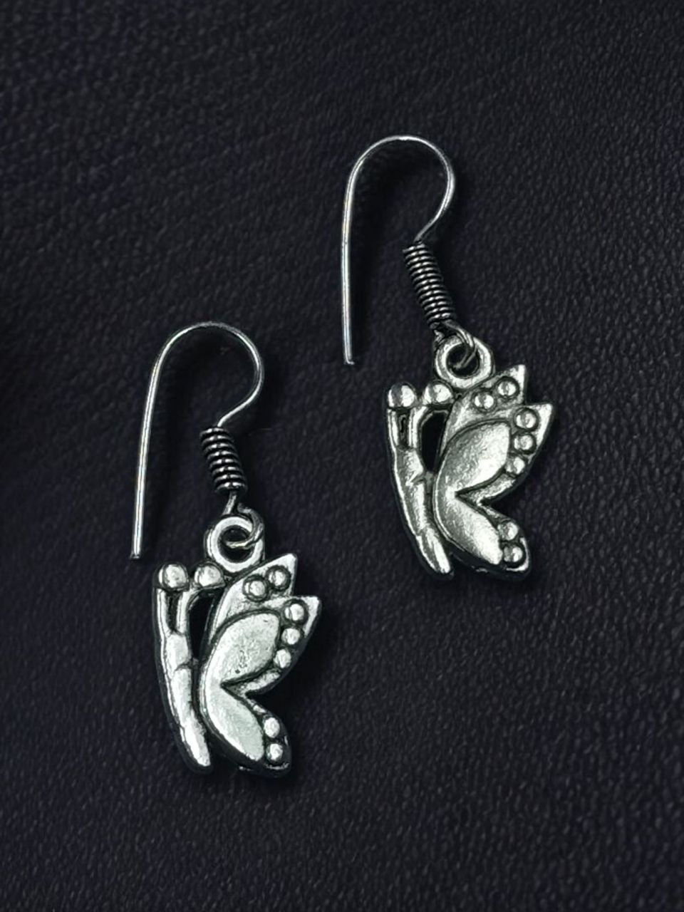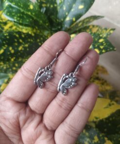 Bring a touch of nature?s elegance and vintage charm to your jewelry collection with these Unique German Silver Butterfly Dangler Earrings. Crafted with high-quality German Silver, these earrings are finished with a traditional oxidized polish, giving them a classic and timeless appeal. The butterfly motif, a universal symbol of grace and transformation, makes these Butterfly Dangler Earrings a meaningful accessory that enhances any outfit.