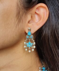 The necklace is designed to sit perfectly on your neckline, ensuring maximum comfort while drawing attention to its exquisite detailing. The matching earrings complement the necklace flawlessly, creating a complete ethnic look that exudes sophistication. Each element of this set is thoughtfully handcrafted, ensuring that you receive a piece that is not only beautiful but also long-lasting.