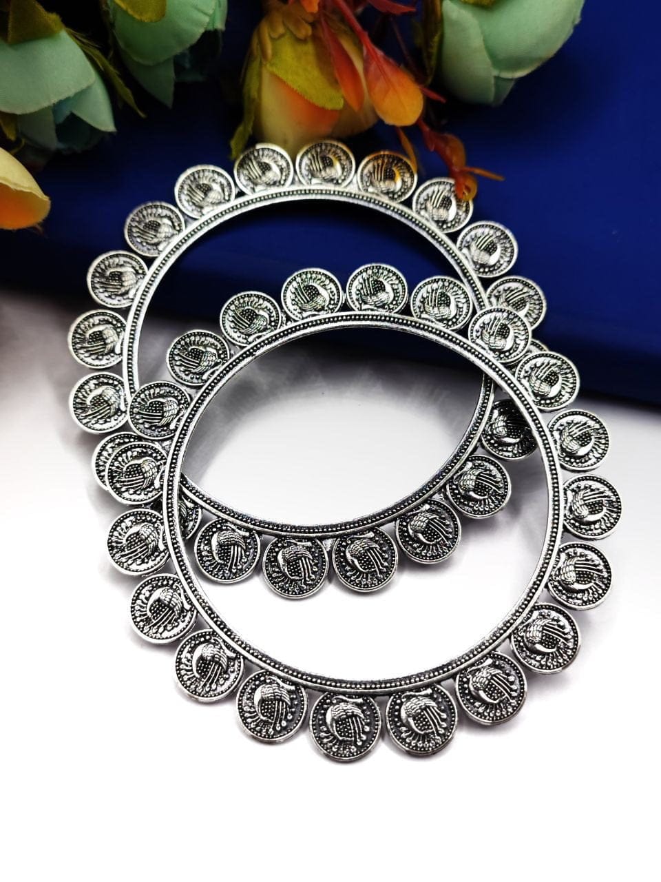 Unique Oxidised German Silver Peacock Coin Bangle For Girls