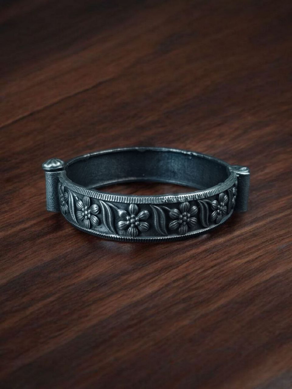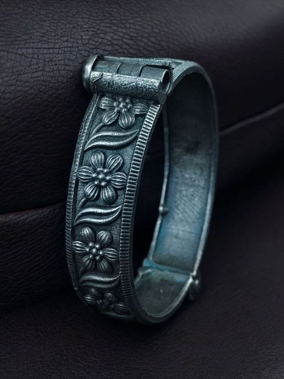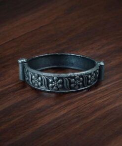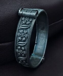 The kada features beautiful floral art carved in intricate patterns that symbolize grace and femininity. With its oxidized silver look, it exudes a vintage aura while remaining versatile enough to pair with both modern and traditional outfits. Whether worn alone for a subtle statement or stacked with other bangles for a bold ethnic style, this Flower Art Bangles adapts effortlessly to your fashion needs.