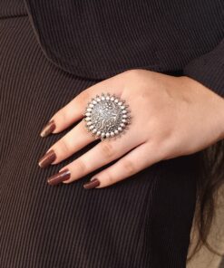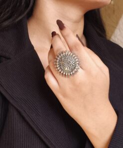 This ring is more than just an accessory ? it?s a statement piece. The bold floral design and oxidized texture make it ideal for pairing with ethnic outfits like sarees, lehengas, or kurtis, as well as with boho-chic or Indo-Western attire. Whether you’re attending a wedding, festival, cultural event, or simply want to enhance your everyday look, this ring adds an artistic and eye-catching touch.